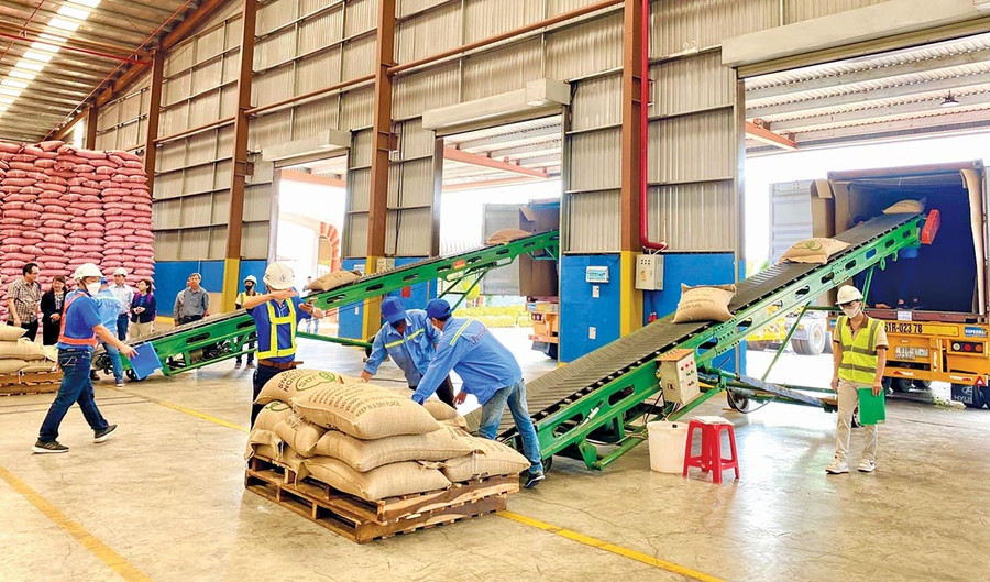 Công ty TNHH Vĩnh Hiệp (Khu công nghiệp Trà Đa, phường Pleiku) chuẩn bị sản phẩm cà phê xuất khẩu. Ảnh: Hà Duy