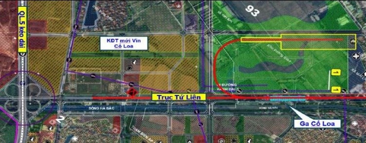 • TP. Hà Nội: Tuyến xuất phát từ ga Cổ Loa, đi theo giải phân cách giữa đường dẫn nối cầu Tứ Liên, sau đó vào hành lang giữa đường điện 500kV và đường song hành Vành đai 3.