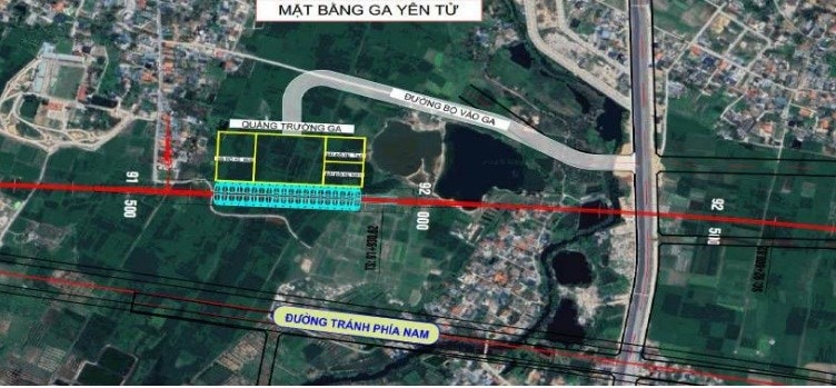 Là ga trung gian tại tỉnh Quảng Ninh, diện tích khoảng 0,91 ha. Vị trí ga gần đền Trình – Yên Tử (cách 500 m) và dự kiến kết nối với ga cuối tuyến đường sắt Monorail và bến xe phía Tây của tỉnh theo quy hoạch.