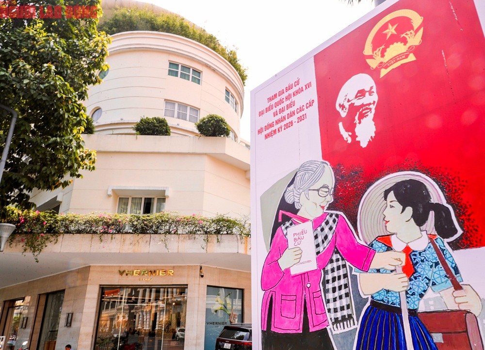 Cùng với các tuyến đường chính như Lê Duẩn, Nam Kỳ Khởi Nghĩa, xung quanh khu vực phố đi bộ Nguyễn Huệ nhiều băng rôn, áp phích lớn, màn hình led với nội dung tuyên truyền về quyền và nghĩa vụ của cử tri được lắp đặt nổi bật.